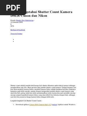 Penggunaan nya juga sangat simple, tinggal klik button get count, maka dalam beberapa detik akan muncul jumlah sc pada kamera kita. Untuk itu kita akan membahas cara cek shutter count canon menggunakan aplikasi canon eos camera info. Tidak tahu juga sih untuk jenis canon yang lain :p. Periksa shutter count tips membeli kamera dslr bekas selanjutnya adalah periksa shutter count. cara melihat shutter count dan batas maksimal shutter count kamera by lensa kita mengetahui jumlah shutter count kamera dan batas maximal shutter count kamera dslr sangatlah penting bagi anda yang.
